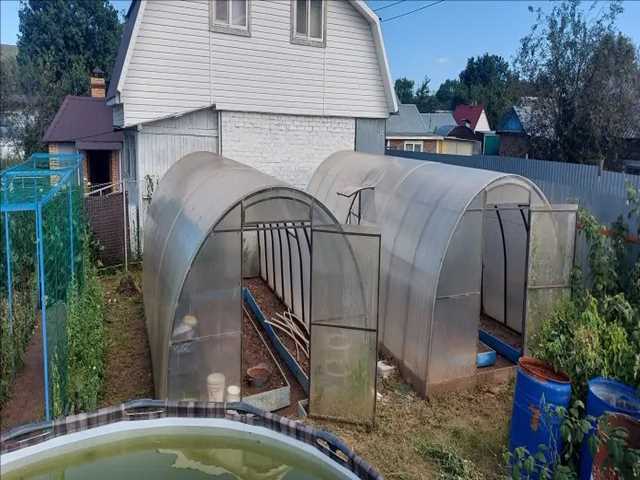 · 2 теплицы (по 6 метров): Для тех, кто любит землю и хочет кормить семью своими помидорами и огурцами. Обе длинные, урожайные.