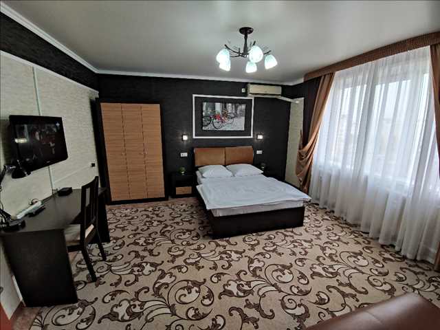 Зал: 2х спальня кровать, 2 прикроватные тумбы, 2 бра, шифоньер 3х створчатый, картина, кондиционер, телевизор, стол письменный, стул, ковер, занавески, люстра, диван, столик, цветок, гладильная доска, сушилка.